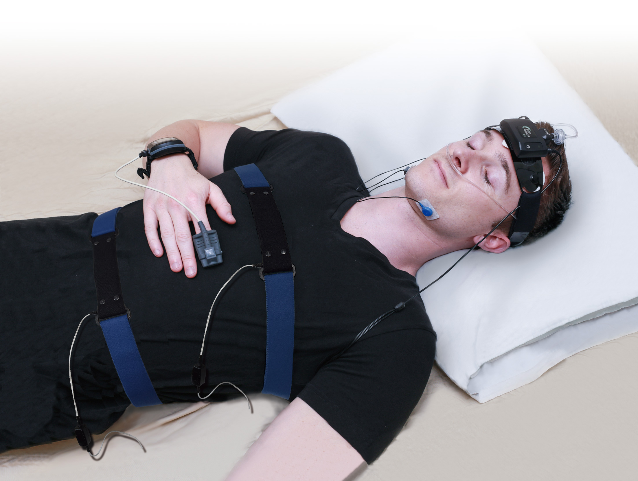 自宅に装置が郵送され、患者さんは装置を自分で装着し、通常のリラックスした状態で就寝します。これにより、睡眠中の状態をより自然に記録できます。検査は1回では判断が難しい場合もあり、2〜3晩にわたって行うこともあります。